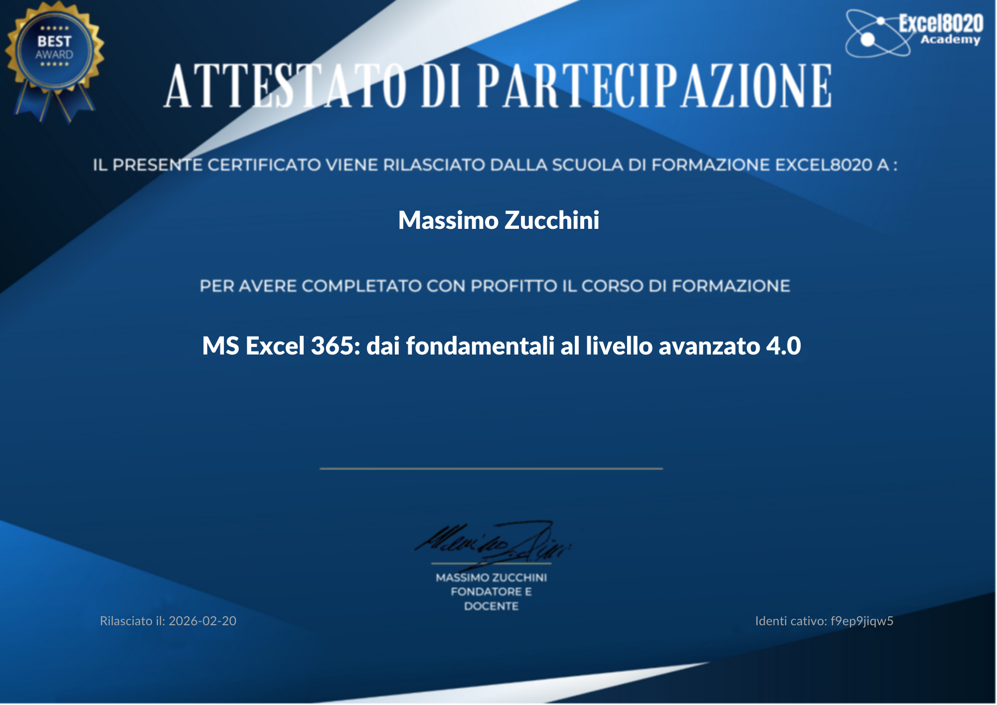 - Fondatore del sito Excel8020.it per erogazione corsi FAD e in aula.